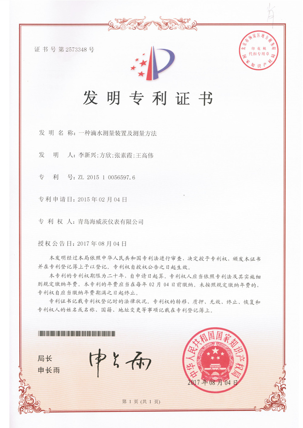滴水測量裝置及測量方法發明專利